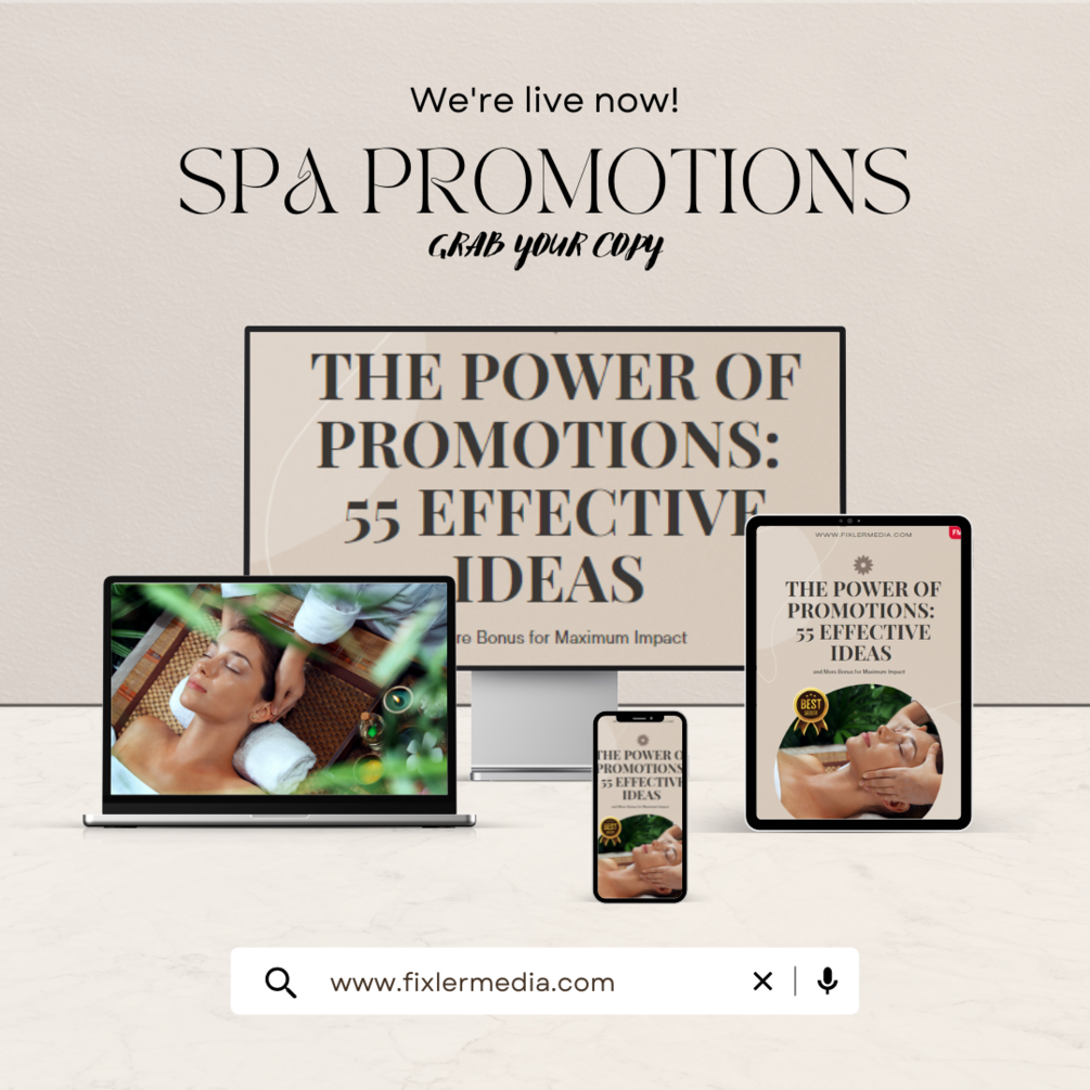 Introducing our latest digital ebook product, filled with 55 exciting promotions ideas specifically crafted for spa owners!